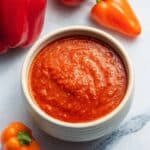 - Simmer Sauce: Transfer the blended pepper mixture to a small saucepan and bring it to a boil over medium heat. Reduce the heat to low and gently simmer the sauce for about 15 minutes, stirring frequently to prevent burning. Taste and adjust salt as needed.