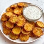 Crispy, tangy Air Fryer Fried Pickles coated in a crunchy panko breadcrumb crust and served with a creamy, flavorful dipping sauce. This healthier twist on a classic bar snack uses an air fryer for perfectly golden and crunchy pickles without the deep-frying mess.
