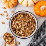 - Step 8: Let the pumpkin seeds cool for 5 minutes before transferring to a bowl and serving.