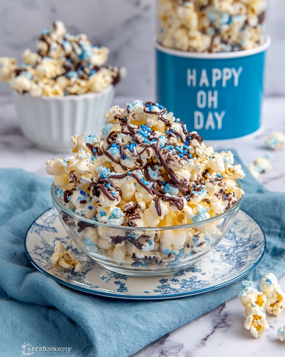 - Step 5: Return the popcorn to the refrigerator for an additional 5 minutes to set the drizzle. Once firm, break the popcorn into chunks before serving.