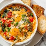 Baked Feta Eggs is a flavorful and comforting dish that combines roasted vegetables, creamy feta, and perfectly baked eggs. This easy recipe is perfect for breakfast or brunch and pairs wonderfully with crusty bread for dipping.