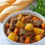 A classic, rich, and hearty beef stew made by slow-cooking tender stewing beef with aromatic vegetables, herbs, and spices in a flavorful tomato and red wine broth until melt-in-your-mouth tender. Perfectly comforting and ideal for cozy meals.