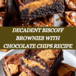 These decadent Biscoff Brownies combine rich dark chocolate and buttery goodness with the unique caramelized flavor of Biscoff biscuits and spread. Loaded with chocolate chips and chunks of Biscoff biscuits, these fudgy brownies have dollops of creamy Biscoff spread on top for an extra indulgent treat. Perfectly baked to achieve a slightly gooey center, these brownies are a delightful dessert for any chocolate lover.