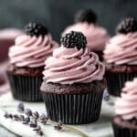 Delight in these decadent Blackberry Lavender Chocolate Cupcakes featuring moist chocolate cake infused with rich cocoa and coffee, topped with a fragrant lavender blackberry buttercream. Perfectly balanced with floral notes and fruity sweetness, these cupcakes make an elegant treat for any occasion.