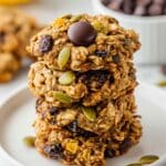 These Breakfast Cookies are a wholesome and delicious way to start your day, packed with nutritious ingredients like mashed bananas, almond butter, rolled oats, and a mix of tasty add-ins including golden raisins, dark chocolate chips, pepitas, and flax seeds. Soft, chewy, and naturally sweetened with honey, they make for a perfect on-the-go breakfast or healthy snack option.