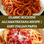 Keywords: Bucatini, Amatriciana, Italian pasta recipe, pancetta pasta, spicy tomato sauce, authentic Italian, bucatini all’amatriciana