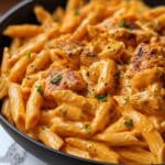 This creamy and spicy Buffalo Chicken Pasta combines tender cubes of chicken with a rich buffalo sauce-infused cream sauce, tossed with perfectly al dente penne pasta. Finished with melted mozzarella and Parmesan cheeses, and garnished with fresh green onions and parsley, this dish offers the perfect balance of heat and creaminess for a comforting yet flavorful meal.