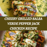 This Cheesy Grilled Salsa Verde Pepper Jack Chicken is a flavorful and easy meal that combines spicy, tangy salsa verde with melty pepper jack cheese. Perfect for a quick weeknight dinner or a weekend barbecue, it takes about 30 minutes from start to finish. Get ready for a delicious dish with a smoky grilled touch and cheesy goodness.