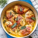 Keywords: Chicken Saltimbocca, Italian chicken recipe, prosciutto chicken, sage chicken, white wine sauce, gluten-free chicken recipe, quick chicken dinner, easy Italian dinner