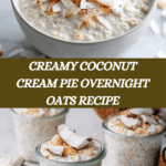 A creamy and delicious Coconut Cream Pie Overnight Oats recipe that combines rolled oats soaked in coconut milk and Greek yogurt, infused with vanilla and cinnamon, and sweetened with maple syrup. This no-cook breakfast is topped with fresh whipped cream and shredded coconut for a tropical twist—perfect for a quick, nutritious, and flavorful morning meal.