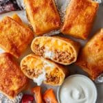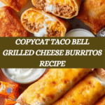 This Copycat Taco Bell Grilled Cheese Burrito recipe combines seasoned ground beef, flavorful Spanish rice, and a creamy chipotle mayo, all wrapped in a flour tortilla with melted cheddar and queso cheese. The burritos are pan-grilled until golden and crispy, replicating the beloved fast-food favorite’s cheesy, crunchy, and savory experience at home.