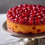 Keywords: cranberry upside down cake, raspberry cake, holiday dessert, fall dessert, fruit upside down cake