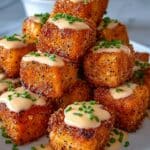 These Crispy Bang Bang Salmon Bites are a flavorful and crunchy appetizer featuring tender salmon cubes coated in a seasoned panko crust and fried to golden perfection. Served with a zesty and creamy Bang Bang sauce, they make a delightful snack or party treat that excites every palate.