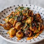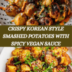 This Crispy Korean Potato Dish features small waxy potatoes seasoned with garlic powder, Korean chili powder, and vegan butter, then smashed and roasted or air-fried until golden and crunchy. Served with a flavorful vegan mayo-based sauce infused with gochujang, lime juice, shallots, and fresh herbs, this dish delivers a spicy, tangy, and crispy treat perfect as a snack or side.