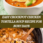 This Crockpot Chicken Tortilla Soup is a hearty and flavorful slow-cooked meal featuring tender chicken breasts simmered with black beans, Mexicorn, jalapeño, enchilada sauce, and cream of chicken soup. Finished with fresh lime and cilantro, and topped with your choice of tortilla strips, cheese, and avocado, it’s a comforting, easy-to-make dish perfect for any day.