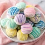 These Easter Egg Oreo Cookie Balls are a fun and festive treat perfect for the spring holiday. They combine the rich flavor of Golden Oreos with creamy white candy coating and colorful decorations. Easy to make and sure to impress, they’re a delightful snack for all ages.