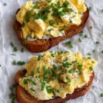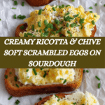 Keywords: soft scrambled eggs, ricotta cheese, chives, easy breakfast, sourdough toast, creamy eggs, simple recipe