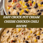 This Easy Crock Pot Cream Cheese Chicken Chili is a comforting and flavorful slow-cooked chili featuring tender shredded chicken, creamy light cream cheese, and a delightful blend of black beans, corn, tomatoes, and ranch seasoning. Perfect for busy days, this recipe combines convenience and deliciousness in one warm bowl.