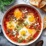 If fresh mozzarella isn’t available, creamy cheeses like burrata or even shredded mozzarella work well. Just add them to the sauce and let them melt before adding the eggs.