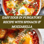 Eggs in Purgatory is a delightful Italian-inspired dish featuring eggs gently poached in a spicy tomato sauce with sautéed onions, garlic, and fresh spinach. Topped with melted mozzarella and fresh herbs, this comforting skillet meal is perfect for breakfast, brunch, or a light dinner served alongside toasted bread.