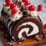 Keywords: Black Forest, Cake Roll, Chocolate Sponge, Cherry Dessert, Ganache, Whipped Cream, Elegant Dessert