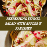 This fresh and vibrant fennel salad combines crisp apples and peppery radishes for a delightful crunch. Enhanced with toasted walnuts and juicy pomegranate seeds, it’s a perfect light side dish or starter with bright, zesty flavors.