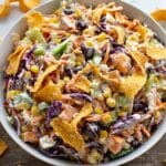 Easy Frito Cowboy Cabbage is a vibrant and flavorful no-cook salad featuring a crunchy coleslaw mix combined with black beans, corn, fresh peppers, and green onions. Tossed in a creamy, tangy chipotle lime dressing and mixed with Chili Cheese Fritos for a zesty crunch, this refreshing dish is perfect for quick lunches or casual gatherings.