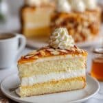 German Bee Sting Cake (Bienenstich) is a classic German dessert featuring a soft, yeast-raised dough topped with a rich honey-almond caramelized crust. It is filled with a luscious vanilla custard cream, creating a perfect balance of textures and flavors. This cake is baked to golden perfection, cooled, then assembled with a creamy custard center making it a delightful treat for special occasions or an indulgent everyday dessert.