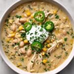 Keywords: white chicken chili, creamy chicken chili, ghostly white chili, autumn chili recipe, gluten free chili, spicy chicken chili, Halloween chili, smoky chili