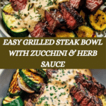 This Grilled Steak Bowl with Sauce & Grilled Zucchini Bliss is a flavorful and satisfying meal perfect for any weeknight or special occasion. Combining tender steak, smoky grilled zucchini, and a creamy herb sauce, it’s easy to prepare and highly customizable to your taste.