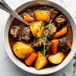 - For a thicker stew, toss the beef cubes in flour before searing to help thicken the liquid.