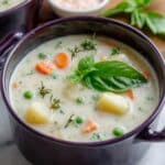This Instant Pot Chunky Potato Soup is a creamy and hearty dish featuring tender cooked potatoes, sautéed fennel, garlic, and ginger, combined with peas and carrots for added texture and flavor. The soup is seasoned with Italian herbs, black pepper, dill weed, and nutritional yeast for a subtle cheesy taste, finished with a blend of heavy cream to create a comforting meal perfect for any occasion.