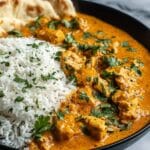 This irresistible Indian Chicken Curry recipe features tender boneless chicken thighs simmered in a rich and flavorful sauce made with aromatic curry powder, garlic, ginger, diced tomatoes, and creamy coconut milk, garnished with fresh cilantro. It’s a satisfying dish perfect for serving with rice or naan.