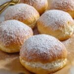 Delight in these traditional Italian Cream Bombs, known as Bomboloni alla Crema, featuring fluffy fried dough filled with rich custard cream and dusted with powdered sugar. Perfectly crispy on the outside and soft on the inside, these homemade treats bring authentic Italian bakery flavors to your kitchen.
