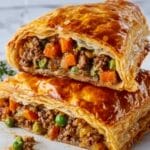 These Juicy Beef Stew Hand Pies are a savory delight featuring tender minced beef and vegetables simmered in a rich tomato and beef broth filling, encased in flaky puff pastry. Perfect as a hearty snack or a satisfying meal, they combine classic beef stew flavors with the convenience of handheld pies, baked to golden perfection.