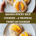 Mango Sticky Rice Cookies are a delightful fusion dessert that combines the tropical flavors of traditional Thai mango sticky rice with the comfort of soft, buttery cookies. These cookies feature a sweet mango jam and creamy coconut-infused sticky rice folded into a rich cookie dough, topped with optional black sesame seeds and flaky sea salt for an irresistible sweet and savory bite.