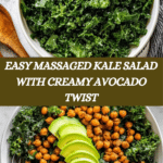 This Massaged Kale Salad is a fresh and vibrant dish featuring tenderized curly kale coated with creamy avocado and bright lemon juice. The massaging process softens the kale’s texture, making it easier to enjoy while enhancing its flavor. Topped with your favorite salad additions like tomatoes, cucumber, and roasted chickpeas, this salad is wholesome, nutritious, and perfect as a light meal or side dish.