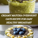 A healthy and delicious Matcha Overnight Oats recipe that combines the earthy flavor of matcha with creamy yogurt, chia seeds, and rolled oats. Perfect for a quick, nutritious breakfast that can be prepped the night before, topped with fresh fruits, nuts, and seeds for texture and extra nutrients.