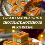 Matcha White Chocolate Motichoor Burfi is a delightful fusion dessert combining the rich creaminess of white chocolate with the earthy notes of matcha and the festive bite of motichoor ladoos. This colorful and flavorful burfi is perfect for special occasions or whenever you crave an indulgent treat with an Indian twist.
