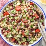 Keywords: Mediterranean bean salad, bean salad, vegetarian salad, healthy salad, no cook salad, lemon dressing, Italian seasoning, easy salad recipe
