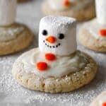 Keywords: sugar cookies, holiday cookies, Christmas cookies, snowman cookies, festive treats, marshmallow cookies, baked cookies