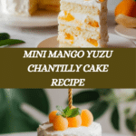 This Mini Mango Yuzu Chantilly Cake is a light and airy dessert that combines the delicate flavors of yuzu citrus with fresh mango and smooth Chantilly cream. The cake layers are softly whipped with egg whites for a fluffy texture, while the zesty yuzu powder adds a unique twist. Perfect for a refreshing treat or elegant presentation, this cake is enjoyed chilled and decorated with luscious mango slices.