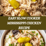Mississippi Chicken is a flavorful and effortless slow cooker dish perfect for busy weeknights. Tender chicken breasts are cooked with tangy pepperoncini peppers, savory ranch seasoning, and rich butter, creating a juicy, melt-in-your-mouth meal.