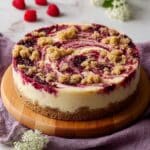 - Top and Bake the Cake: Sprinkle the streusel topping evenly over the raspberries. Bake at 350°F (175°C) for 40–45 minutes, or until a cake tester inserted into the center comes out clean. Let cake cool on a rack, then run a thin knife around the edge and release the springform ring. Allow to cool completely before slicing.