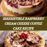 This Mouthwatering Raspberry Cream Cheese Coffee Cake combines a tender, fluffy cake with a rich cream cheese filling, bursting fresh raspberries, and a crunchy buttery streusel topping. Perfect for breakfast or an indulgent afternoon treat, this recipe offers a harmonious blend of tangy and sweet flavors with a delightful texture contrast.