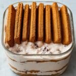A delightful no-bake Japanese-style cheesecake featuring a creamy blend of Greek yogurt and cottage cheese with a rich chocolate swirl, layered over crunchy Biscoff cookies. This easy and elegant dessert requires no oven and is perfect for a quick, indulgent treat.