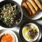 No-cook Tabbouleh is a fresh and vibrant Middle Eastern salad featuring bulgur soaked in juicy tomatoes and lemon juice, combined with aromatic herbs like parsley, mint, and green onions, then tossed with extra virgin olive oil and seasoned with salt and pepper. This refreshing, healthy dish requires no cooking, making it quick to prepare and perfect as a light meal or side dish.