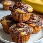 Keywords: Nutella muffins, banana muffins, banana swirl muffins, easy dessert, quick muffins, homemade muffins