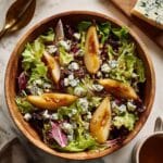 This pear salad combines sweet, tangy, and savory flavors with a satisfying crunch. Caramelized pears, toasted pumpkin seeds, and creamy blue cheese come together over fresh greens for a refreshing and elegant dish perfect for any season.
