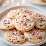 Keywords: peppermint bark cookies, holiday cookies, chocolate peppermint cookies, festive cookies, peppermint candy cookies, chocolate chip cookies